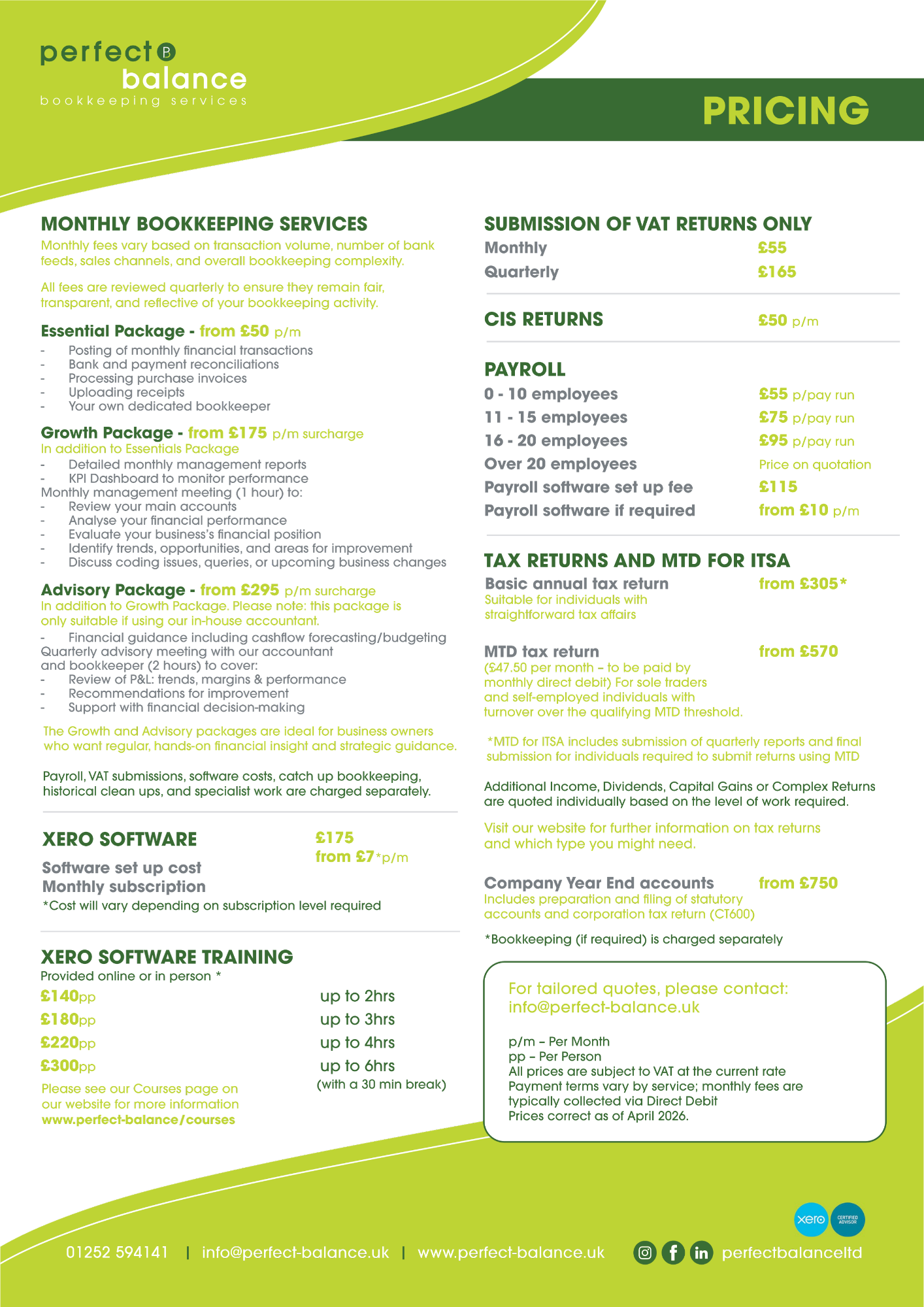 Take a look at our online brochure which features our in house Bookkeeping Process